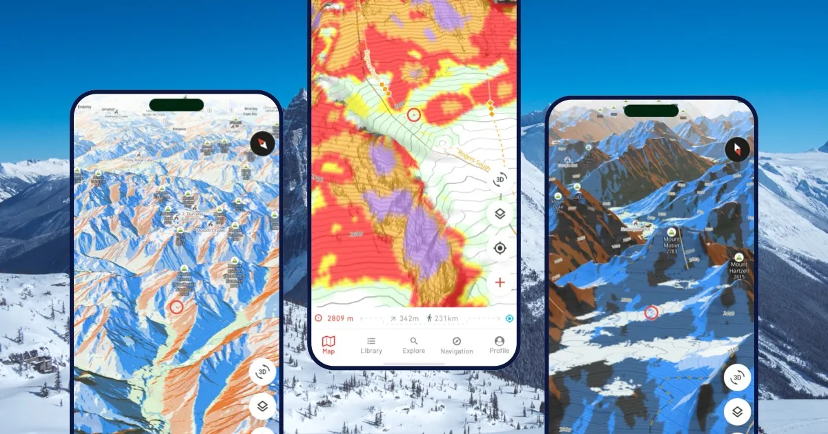 - Escape routes: Always have a safe zone in mind — somewhere you can stop, regroup, or exit quickly.Make sure to study your line in Outmap’s 3D mode. This helps you visualize rollovers, cliff bands, and benches that might not show clearly on a 2D map.